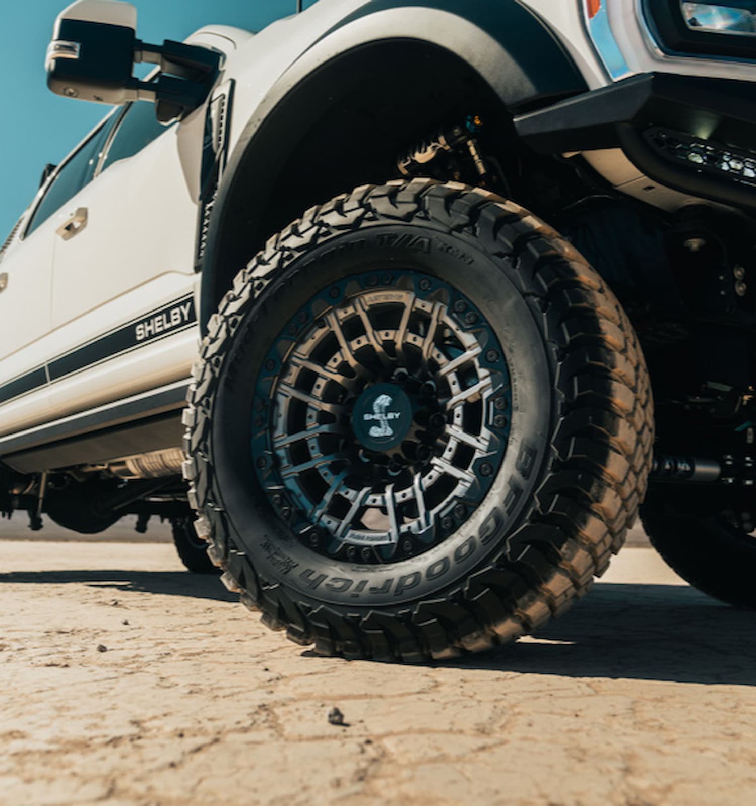 Under the hood, the Shelby Super Baja F-250 packs a 6.7L V8 diesel engine, paired with a 5-inch BDS suspension lift and a full suite of FOX adjustable shocks for ultimate control on and off the road.