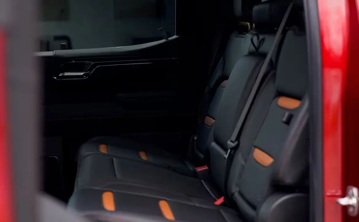 Inside, the Sierra 1500 AT4 combines rugged styling with premium materials. Jet Black leather seating with Kalahari accents, perforated inserts and soft-touch surfaces give the cabin a refined yet purposeful look. A large central touchscreen and digital driver display deliver clear information and connectivity, while smartphone integration, navigation and a premium sound system enhance daily usability. Safety assurance comes from a suite of advanced driver-assist features, including trailer side-blind-zone alert, lane-keeping assist and a 360-degree camera system.