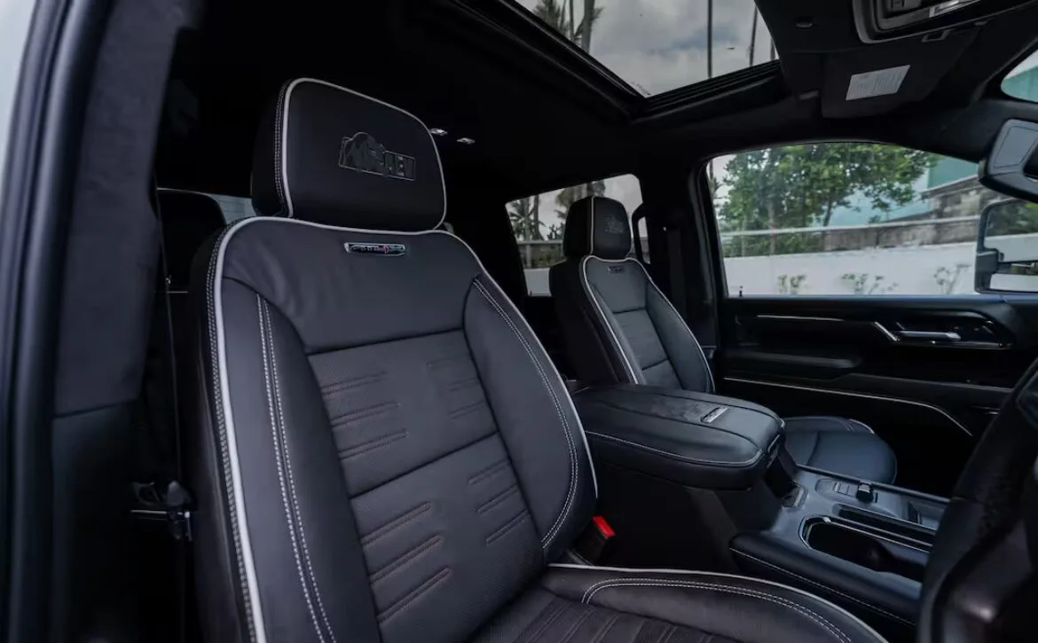 Inside, the Sierra AT4X AEV pairs rugged durability with first-class refinement. The cabin features premium leather seating with AEV-exclusive embroidery, ventilated and heated front seats, and precision detailing throughout. The expansive 13.4-inch touchscreen and 12.3-inch digital driver display deliver seamless connectivity, navigation and vehicle data, while smartphone integration and a premium audio system enhance every drive. Advanced driver assistance features include adaptive cruise control, trailer side blind-zone alert, lane-keeping assist and a surround-view camera system for total visibility and safety assurance.